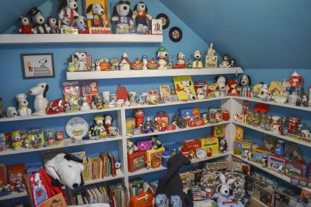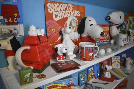 “I have the room upstairs that’s full,” she said. “And then at Christmastime, I have two or three storage boxes that I bring in from the garage and I set up a tree with just Snoopy ornaments on it and have the little plush musical toys.”
