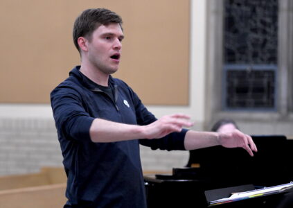 Jacob Pedersen, of Fort Dodge, conducts the Fort Dodge Choral