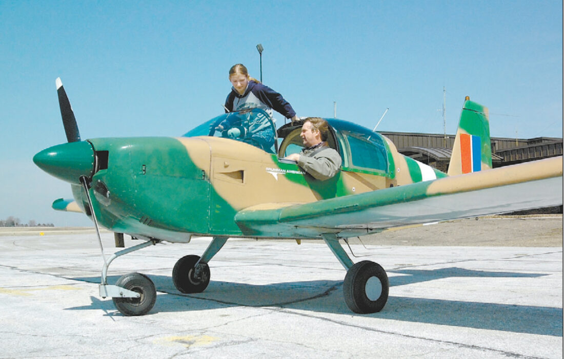 Radann Dawson and his daughter Karrah Dawson climb into their Grumman plane painted to resemble a World Ward II-era British Spitfire. The two flew to Fort Dodge for the annual chili fly-in hosted by area aviation enthusiasts club the Plane Crazies. Dawson said the event kicks off his flying season. More than a dozen pilots landed at the Fort Dodge Regional Airport for the event.