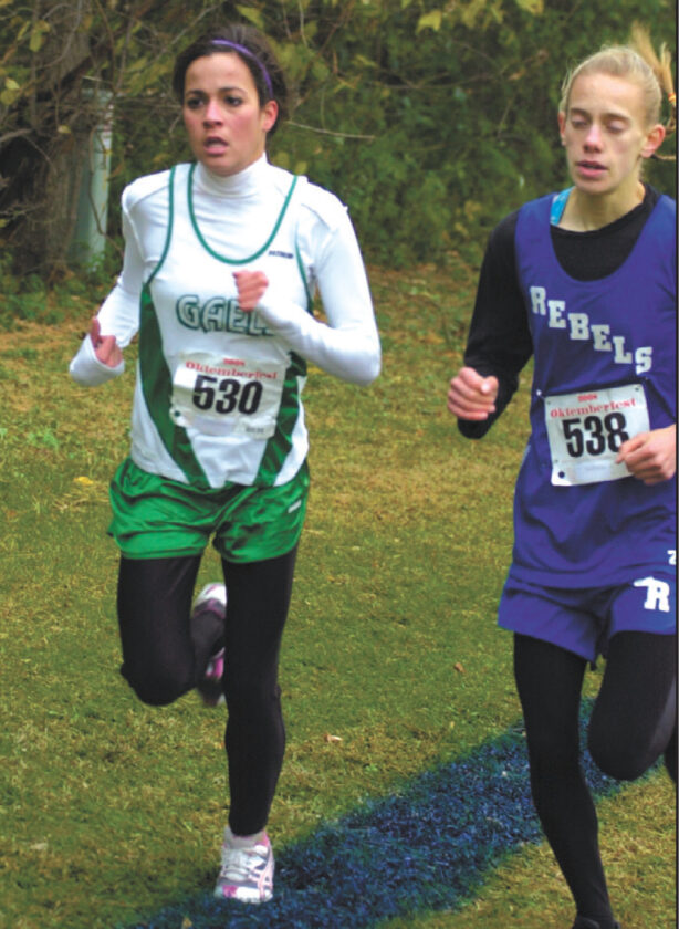 St. Edmond’s Lexie Ronconi runs in the Class 1A district cross country meet at Marshalltown. Ronconi was fourth, and the Gaels won the team title.