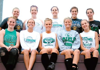 Returning letter winners for the St. Edmond softball team in 2009 included, in front, from left, Kaitlyn Barrett, Liz Crimmins, Devyn Horbach, Hannah Gonnerman and Chelsea Benzie. In back, from left, are Jordan Florey, Timmi Dencklau, Emma Drzycimski, Allie Bianchi and Marti Dencklau.