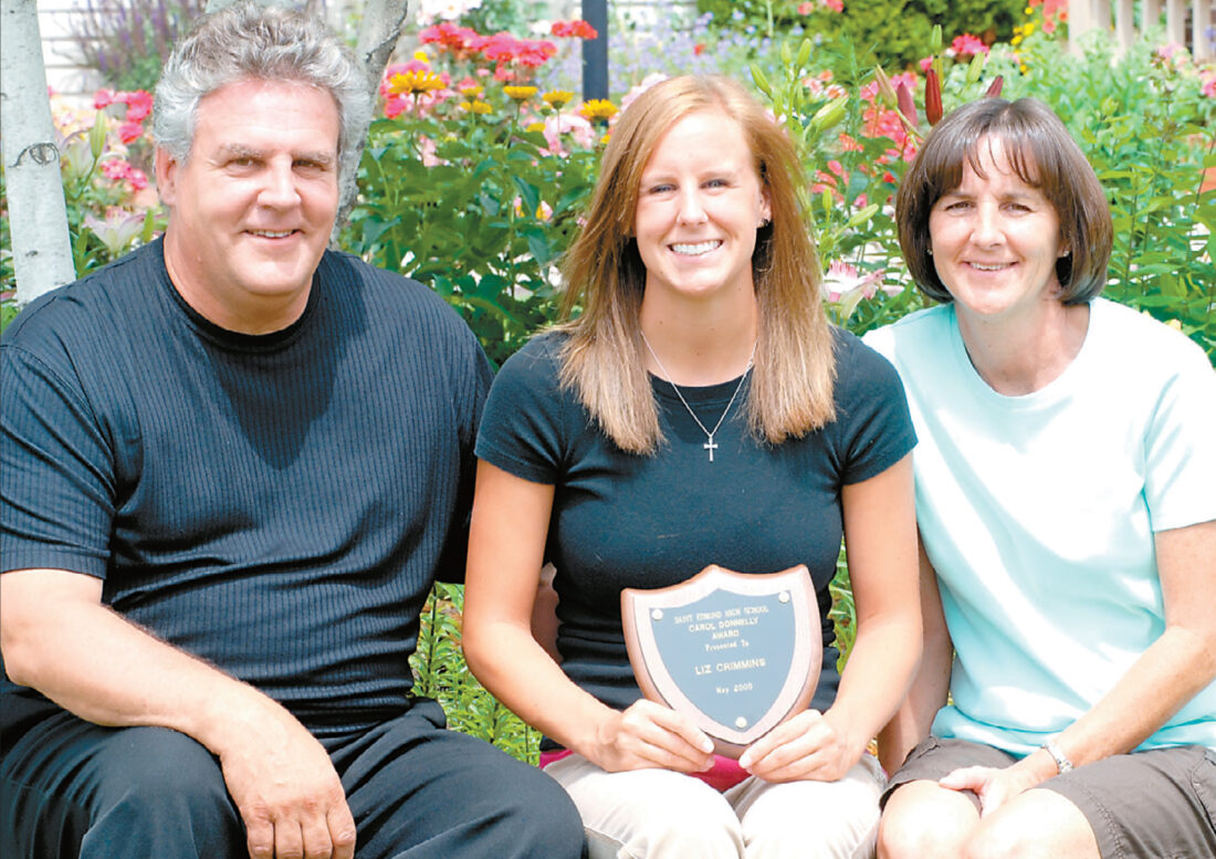 Liz Crimmins, St. Edmond’s 2009 Donnelly Award winner, is pictured here with her father Denny and mother Maureen. The Donnelly Award is given annually to the top female senior student-athlete at St. Edmond High School.