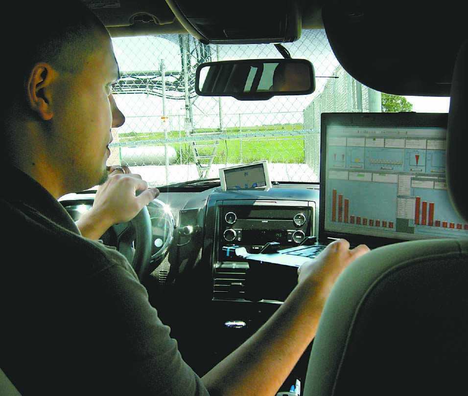 Robert Spizzirri, a system performance engineer for U.S. Cellular, monitors signals in Fort Dodge. Spizzirri, whose job required him to monitor the U.S. Cellular system through most of Iowa, was one of many specialists who work 24 hours a day, 365 days a year to ensure continued operation of the mobile phone system.