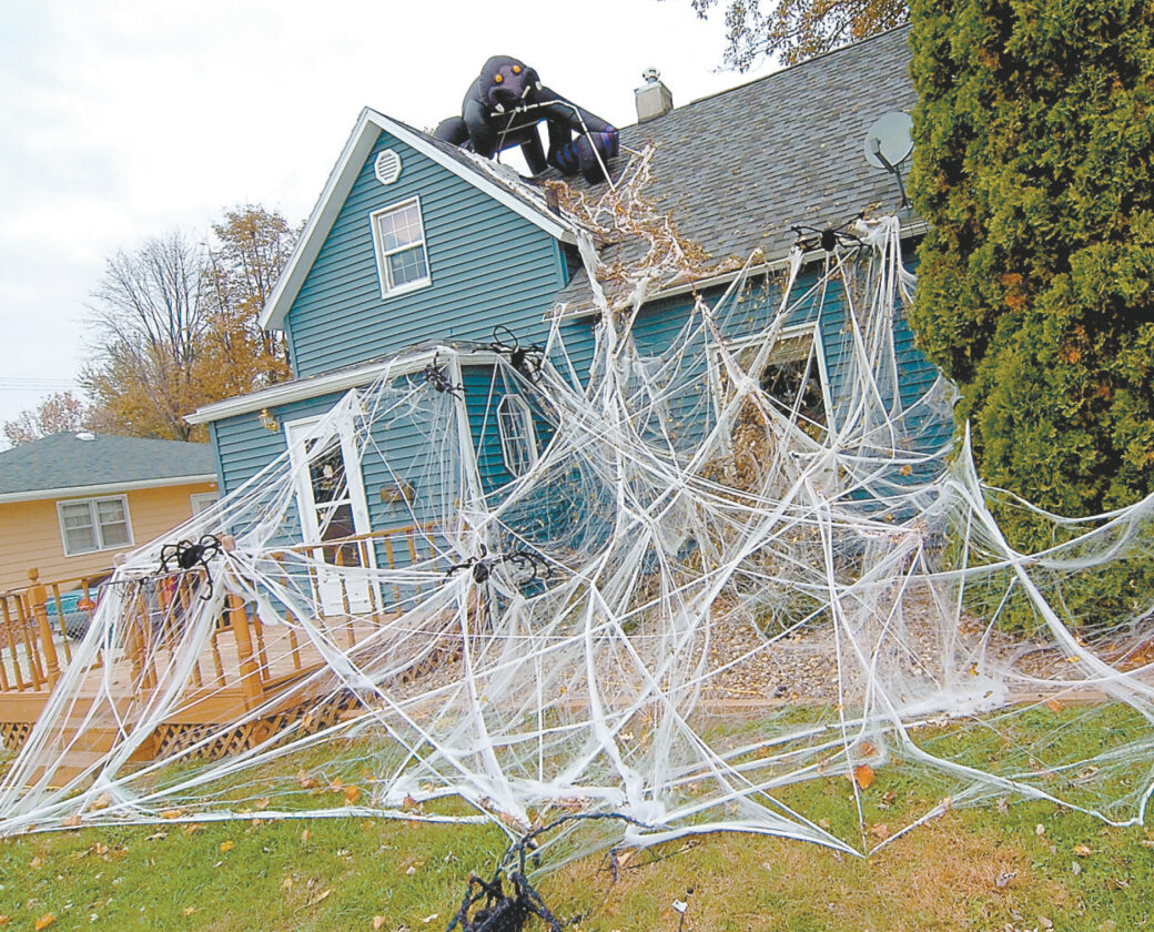 This is what can happen when you leave a small population of spiders to their own devices with a ready supply of equally large things to eat. They might just take over the whole house. This decoration were seen at the Kandi Jameson residence, 2404 Ninth Ave. S., and was only part of the display, which also featured a pumpkin drawn by a scary horse and a graveyard full of what might have been spider dinners.
