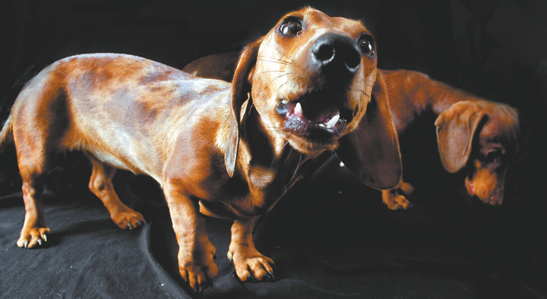 One of 15 dachshund puppies taken in by the Almost Home animal shelter checks out a camera. A breeder had agreed to relinquish 15 of the 45 puppies he had living “free range” on his property.