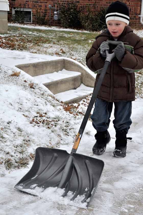 Abram Harp, then 7, spent some time shoveling snow off sidewalks along South 22nd Street when he came home from school. Just enough snow fell in Fort Dodge to cover streets and sidewalks, but accumulation was less than an inch.