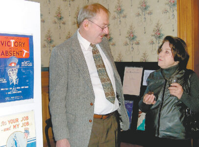 Fort Dodge historian Roger Natte talks to Earlene Nordstrom, of Fort Dodge, after a talk on Ed Breen’s Letters from Home at the Vincent House. Natte spoke about the letters written by Breen to service men and women from Webster County during World War II. What started as an idea by a radio personality in Alabama was adopted by Breen, who for three years sent letters to 5,500 area people serving in the war.