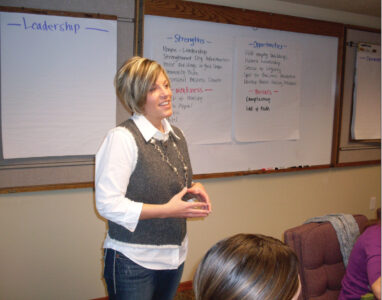Kim Anderson Heller speaks at a half-day strategic planning session with Clarion Partnership for Growth board members and community leaders. She was featured in At Your Service, a weekly look at area residents who have chosen a life of public service.