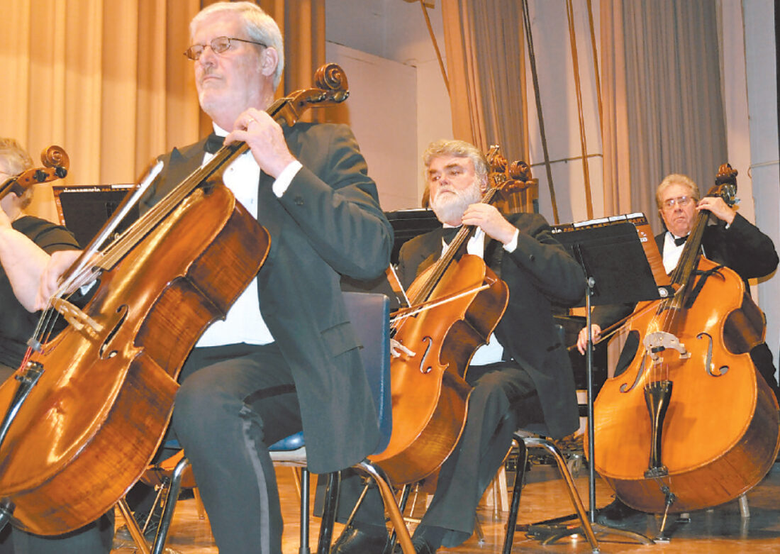 Cello players Sidney Baker, of Clarion, left, and T.H. Hoefing, of Manson, center, play during the 61st season concert of the Fort Dodge Area Symphony. Dick McCoy, of Ames, right, plays the string bass.