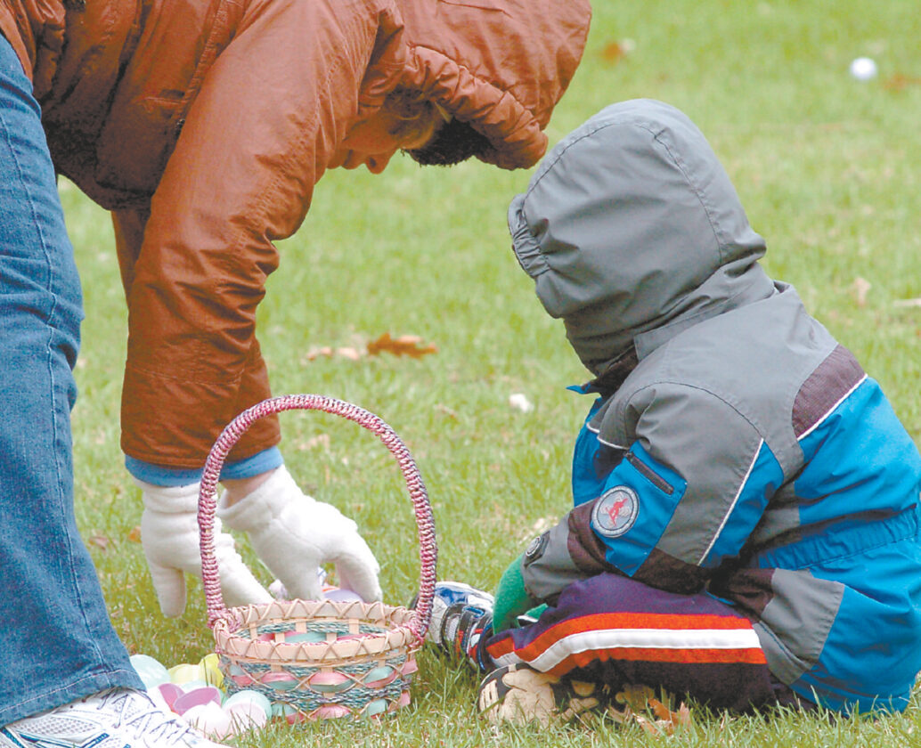 Sherri Fuchs, of Fort Dodge, helps her son, Sammy, then 5, count the eggs he collected during the third annual Family Easter Egg Hunt on the City Square in downtown Fort Dodge. Each child was asked to limit their collection to 15 eggs.