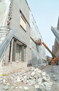 -Messenger file photo The alley east of the Webster County Law Enforcement Center was closed as crews work in the area to renovate the building. Crews removed the outer brick and windows on the wall. This was part of Phase 1 of the renovation project.