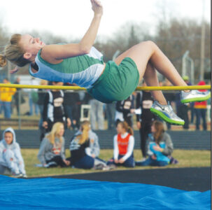 st. Edmond’s Hilary Hotz competes in the high jump in Gowrie for the Gaels. They earned first place in the Richard Ryan Relays.