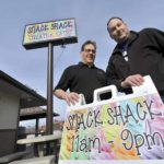 -Messenger photo by Hans Madsen Snack Shack co-owners Steve Springer, at left, and Jason Kahler pose with the signs for their business recently. They opened April 1 and besides malts and shakes, also offer a selection of foods using fresh locally sourced ingredients. They are located at 11 S. 16th St. behind the Fire Station.