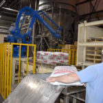 Cory Froisland, packaging operator, handles a bag of lysine at CJ Bio America recently.