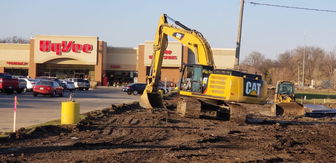 Ground work and construction of a new Fast and Fresh Express store is just beginning to the east of the Hy-Vee Food Store.