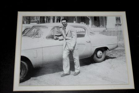 Charles Lombard poses next to his 1950s Studebaker. His son, Corey Lombard, is owner of Rides Bar and Grill. Corey Lombard named one of his burgers after the Studebaker car. The framed picture of Charles Lombard can be seen at the restaurant.