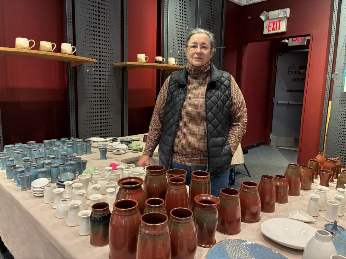 Yana Reid offers her work from Century Farm Pottery at the indoor Farmers Market at the North Grand Mall in Ames.