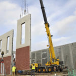 Despite bitter cold, precast panels are being fit into place