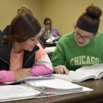 - -Messenger photo by Chad Thompson Miranda Engeldinger, 20, left, and Micayla White, 21, brush up on medical terminology inside the Applied Science and Technology building on Iowa Central Community College’s main campus recently. Engeldinger, a Manson native, and White, a native of Algona, are set to graduate from Iowa Central’s nursing program in May.
