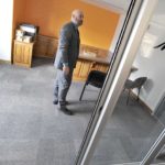 -Messenger photo by Hans Madsen Southeast Valley School District Superintendent Brian Johnson looks around a now empty office in the Macke Motors building in Gowrie.
