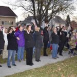 -Messenger photo by Chad Thompson Dozens of people gathered outside the home of Jill Lawler Thursday night to wave in support of her. Lawler was diagnosed with leukemia in January. She returned home from treatments in October.
