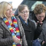 Janet Clark, Bill Gormally, and their mother, Bettie Gormally, were among the crowd of wavers.