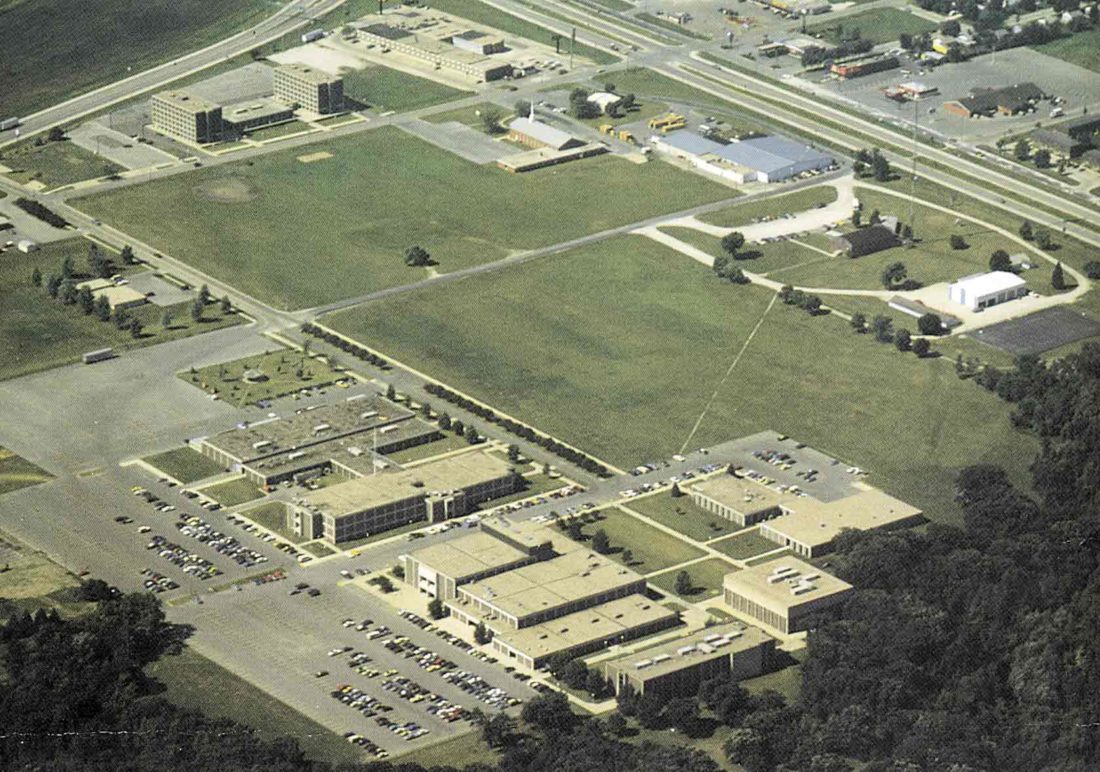 The Iowa Central Community College Fort Dodge campus is pictured in an aerial view that dates to the early 1980s.