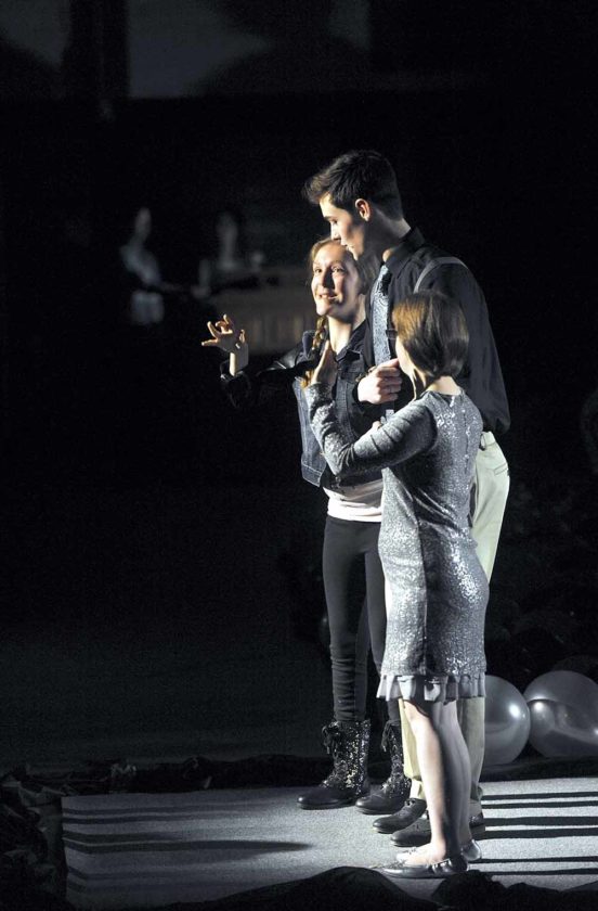 Two members of last year’s Prom Royalty, Morgan Cox, at left, along with Jamie Vaughan, right, returned to crown this year’s royalty. They were escorted by senior Eli Asay, 18, center.
