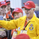 -Messenger photo by Hans Madsen Michael Monroe, of Spencer, takes a photo with his friend Terry Heinrichs, center and his brother, Dean Monroe, at left as they wait to board the Brushy Creek Area Honor Flight to Washington D.C. Saturday morning.