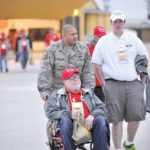 -Messenger photo by Hans Madsen Master Sgt. Ariel Echevarria, with the 133rd Test Squadron helps Air Force veteran William Sankey, of Pomeroy to the plane Saturday morning as the 16th Brushy Creek Area Honor Flight departs for Washington D.C. from the Fort Dodge Regional Airport.