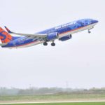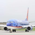 -Messenger photo by Hans Madsen The Sun Country 737-800 carrying the veterans on the 16th Brushy Creek Area Honor Flight makes a sharp turn on the apron as the crew prepares to taxi to the end of the runway.