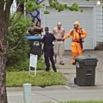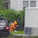 Officers searching the residence were required to wear special equipment to prevent them from coming into contact with anything hazardous that is used in the meth manufacturing process. Officials in orange hazardous materials suits were seen checking through the garbage outside the house.