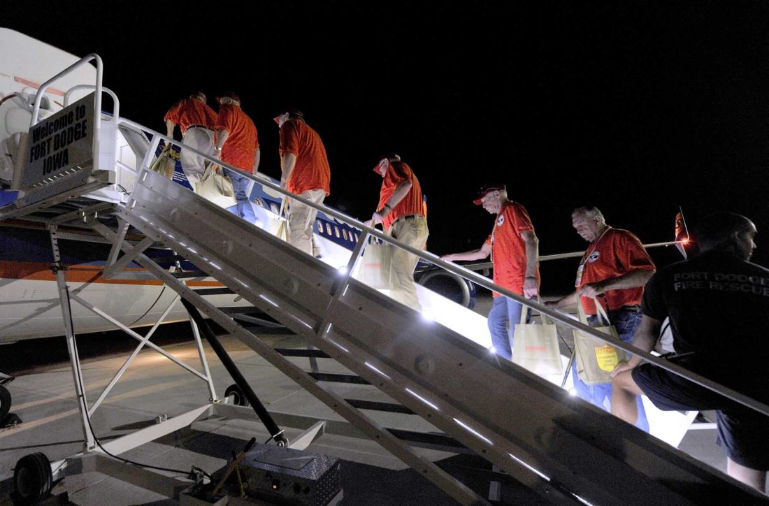 A good part of that platoon was on hand Saturday morning at the Fort Dodge Regional Airport.