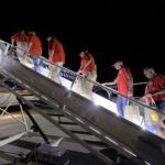 With the sky still dark, veterans board the Brushy Creek Area Honor Flight to Washington, D.C., Saturday morning at the Fort Dodge Regional Airport.