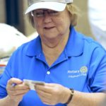 Sandy Fletcher, of Fort Dodge, is part of a squad of Daybreak Rotary Club members who were at the airport by 4 a.m.