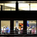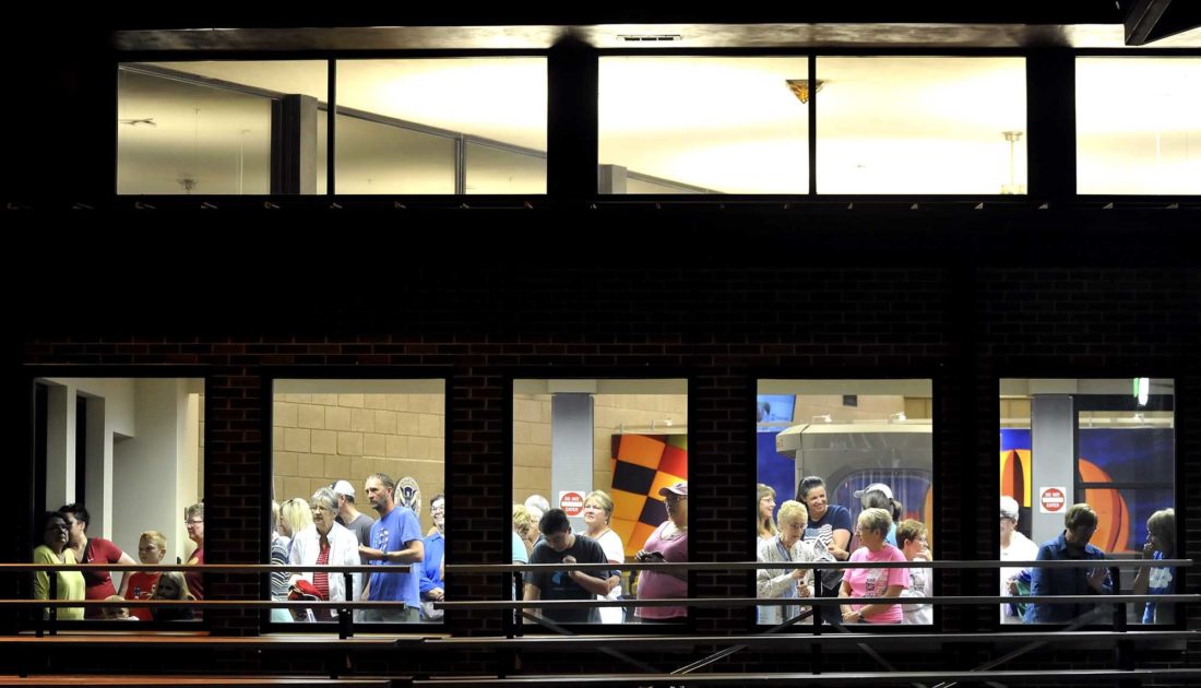Family and friends wait in the Fort Dodge Regional Airport’s terminal to watch the Brushy Creek Area Honor Flight’s takeoff Saturday morning.