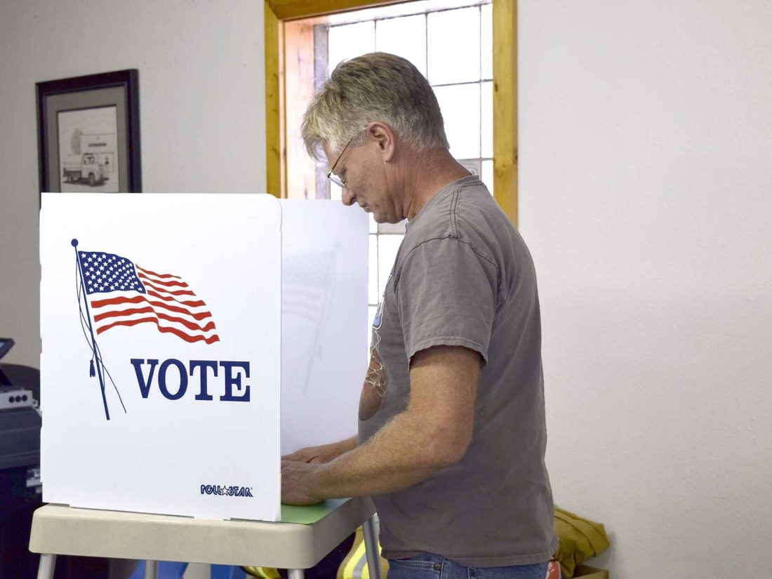 Steve Markert, of Clare, casts his ballot in the special school election Tuesday. The school is asking for approval for $8.8 million to grow the school. About 41 people had voted by 2:45 p.m.