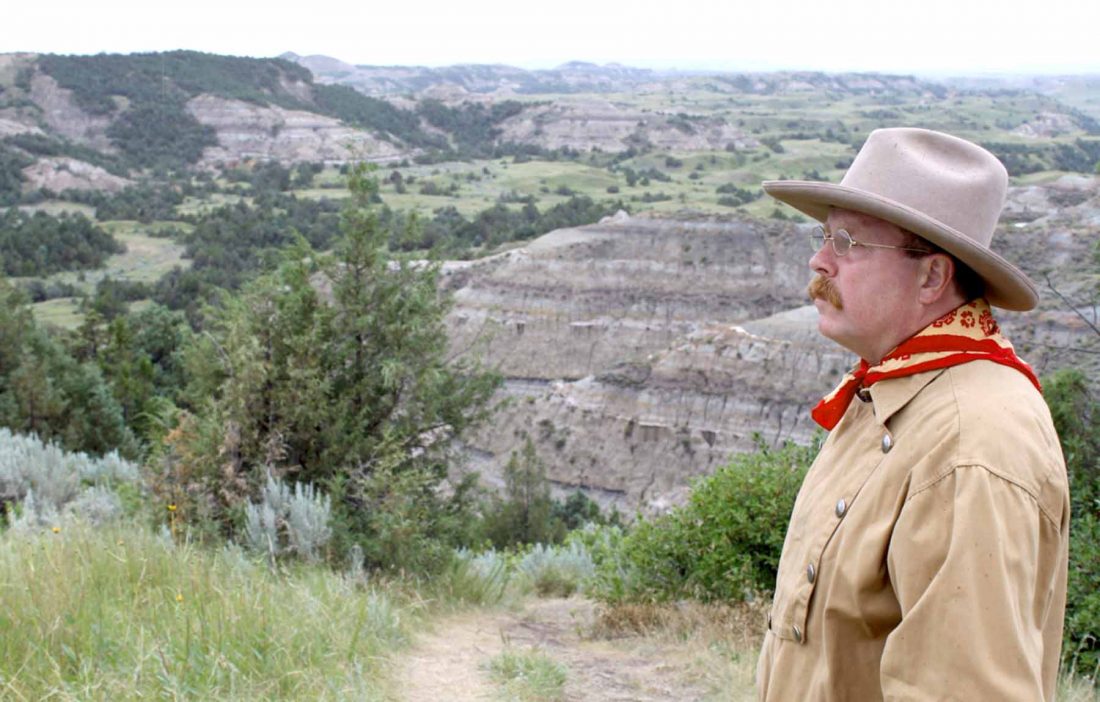Adam Lindquist, as Teddy Roosevelt, poses in North Dakota in this undated photo. Lindquist has been portraying the 26th president since 2007, and speaks about a time in the country’s history when “anything was possible with hard work and determination.”