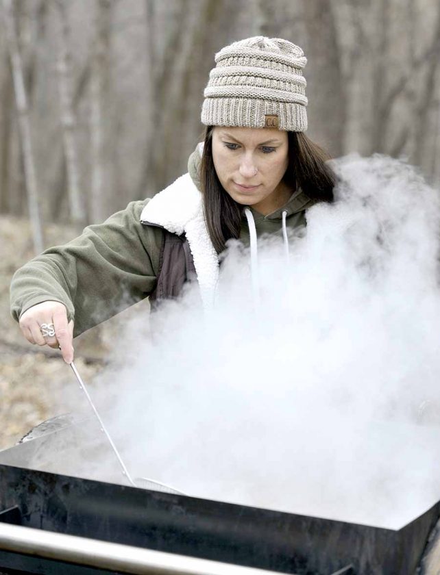 “It’s a long day of cooking sap,” she said. “As it boils down, I add more sap, then add more sap, then add more sap and then add more sap.”