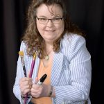 Fort Dodge artist Meg Beshey holds up some of her art supplies, including two brushes and a permanent marker. Beshey has had a lifelong interest in art and comes from a family of artists. Local artist Meg Beshey holds up some of her art supplies, including two brushes and a permanent marker. Beshey has had a lifelong interest in art and comes from a family of artists.