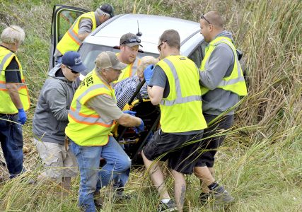 Rescue workers remove Janet Schott, 73, of Humboldt, from her vehicle Thursday afternoon after an accident on U.S. Highway 169 about one half mile south of 140th Street. According to Webster County Sheriff’s Deputy April Murray, preliminary indications were that Schott, who was traveling north, had crossed the center line and then struck a pickup being driven north by Dean Grossnickle, 47, of Gilbert, before coming to rest in the ditch. Schott was taken to UnityPoint Health — Trinity Regional Medical Center with non-life-threatening injuries. Grossnickle was not injured. Clare Rescue, Badger Fire and the Webster County Sheriff’s responded. The accident remains under investigation.