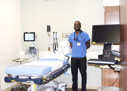 Dr. Chad Rennie stands inside one of the emergency room exam rooms. Rennie treats patients at UnityPoint Health — Trinity Regional Medical Center.