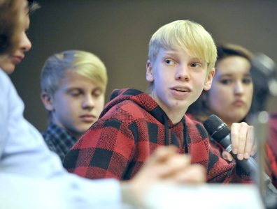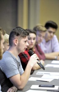 Quinn Lachelt, 16, a junior at Manson Northwest High School talks during the Youth Empowerment Associtation Youth Forum Saturday at Iowa Central Community College.
