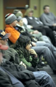 Annamuria Valentine, 11, of Fort Dodge, listens in the audience during the Youth Empowerment Association Youth Forum at Iowa Central Community College.