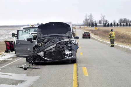A Chrysler minivan crashed into the rear-end of a Ford pickup truck on Paragon Avenue just south of Badger on Monday afternoon. The front end of the van was crushed in and the truck went off the road into the ditch. Both drivers were taken to UnityPoint Health – Trinity Regional Medical Center for treatment for non-life threatening injuries.