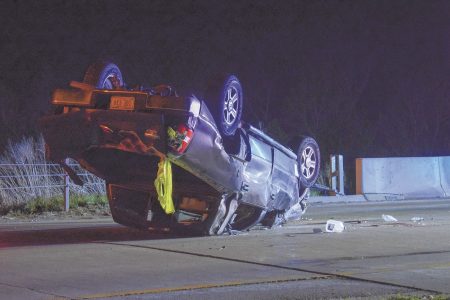 A Ford F-150 driven by Edward Newsome-Crooks, 29 of Fort Dodge, landed on its top following a roll-over crash on Sunday night just before 10 p.m. No other vehicles were involved.
