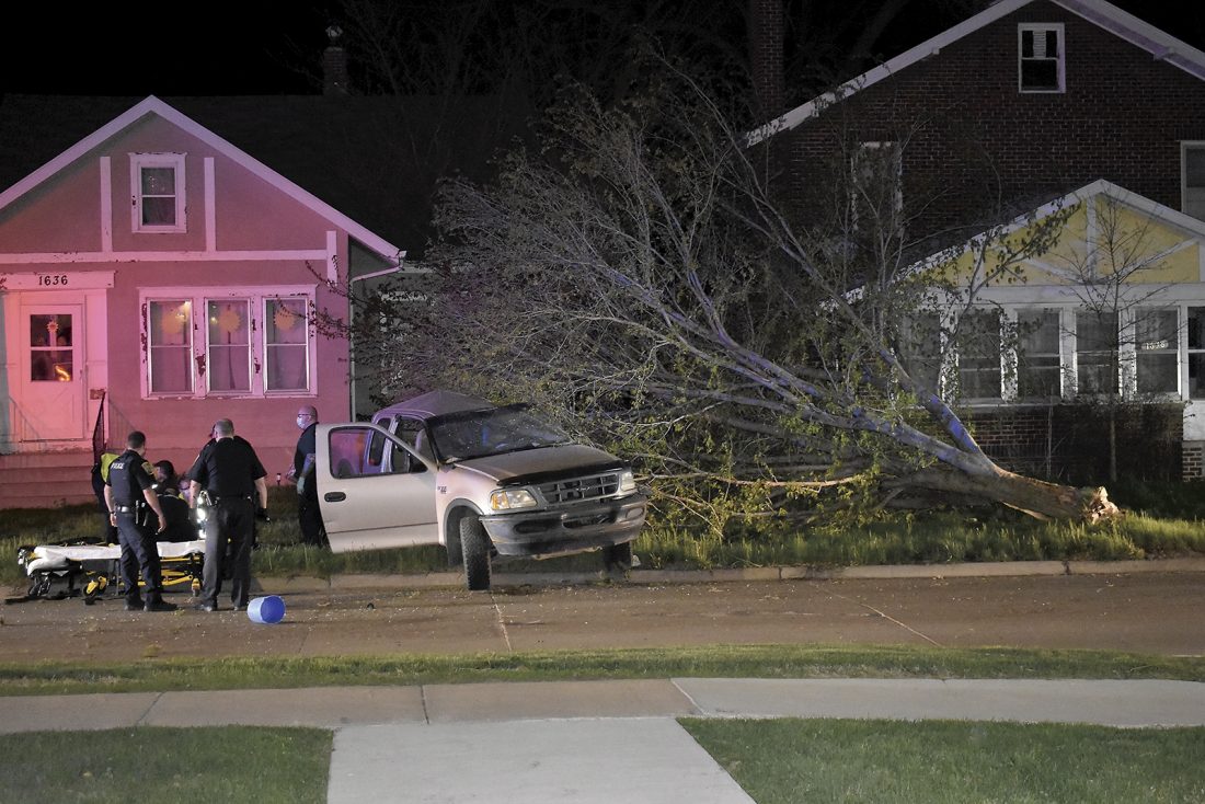 A Fort Dodge man was injured after losing control of the truck he was driving in the 1600 block of Seventh Avenue North Friday at about 10:18 p.m., according to Lt. Joe Bates, of the Fort Dodge Police Department. The truck, driven by Hunter Alexander, 19, knocked over a tree before coming to a stop in a yard on the north side of the street. The airbags deployed in front of him, according to police reports. He was wearing a seat belt. Witnesses reported Alexander was drag racing another vehicle before crashing into the tree. Alexander was transported to UnityPoint Health — Trinity Regional Medical Center with what appeared to be non-life-threatening injuries. Police believe alcohol may have contributed to the crash. The crash remains under investigation. The Fort Dodge Police Department and Fort Dodge Fire Department responded.