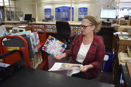 Fort Dodge Public Library librarian Amy Presler sorts through new arrivals for the children’s section.