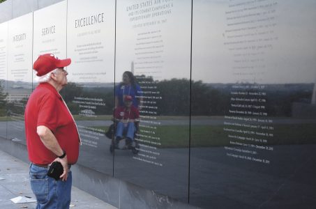 Bob Kearney takes in the names on a wall at the Air Force Memorial while on the Brushy Creek Area Honor Flight in September 2019.