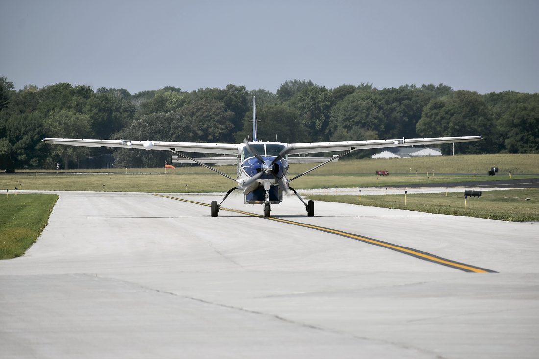An Air Choice One aircraft moves along the taxiway at the Fort Dodge Regional Airport Wednesday morning. The aircraft was carrying Air Choice One representatives Shannon Nichols and Taylor Wood. Air Choice One has introduced partnership with Choice Travel Agency. The partnership allows customers to use the service for free to plan a comprehensive itinerary, including air travel, ground transportation, lodging, entertainment and travel insurance.